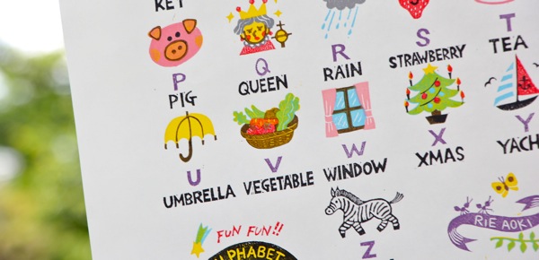 ずっと版画で作りたかったアルファベット表、子供があまり大きくならないうちにと、重い腰を上げて作りました!それぞれの言葉は、私の趣味で選びました。とても綺麗に刷り上がっているので、リビングに飾って楽しんでいます。Creemaでも販売してます。(詳細はshopから見て下さい。)