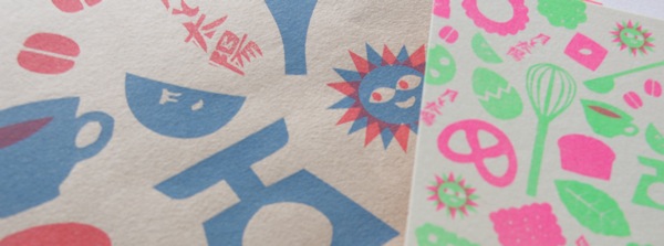 布製品を手がける、mezzo forte様よりショップカードとタグデザインのご依頼を頂きました。ピンクの猫ちゃんが目印です。今回も、孔版印刷のドットがよい感じに出ています!
